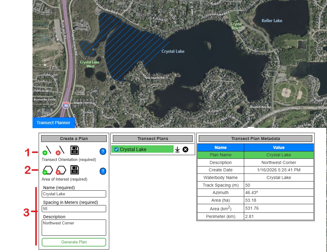 3. Give the survey a name, Spacing, a brief discription, and click the Generate Plan button.
